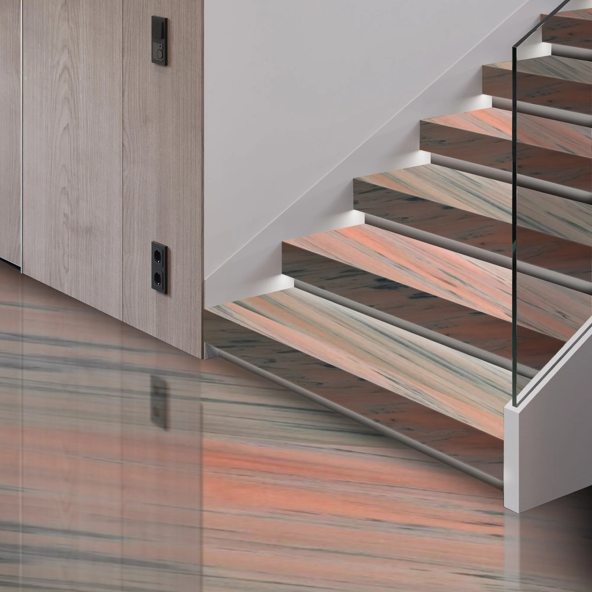 Enhance your home or office with the richness of pink marble, making staircases and
